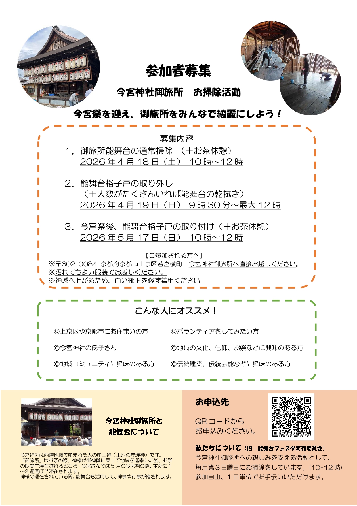 【参加者募集】今宮神社御旅所 お掃除活動 ~今宮祭を迎え、御旅所をみんなで綺麗にしよう!~
