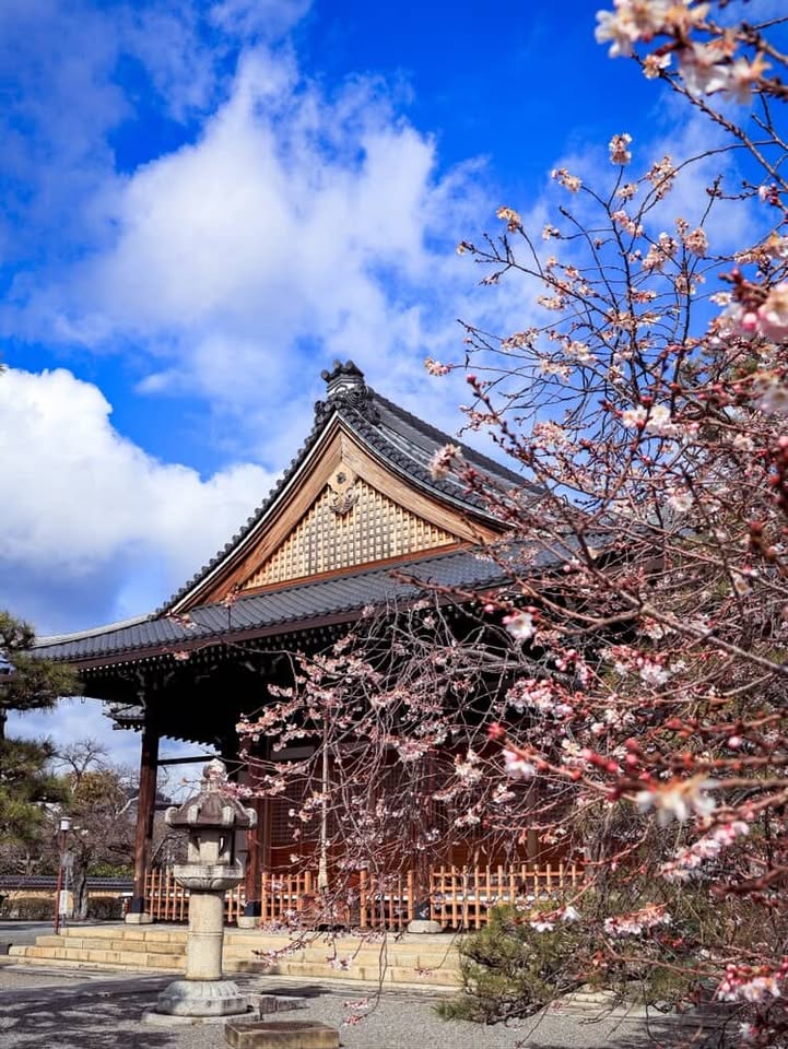重厚な造りの本殿を照らす光が、京都の歴史の重みを