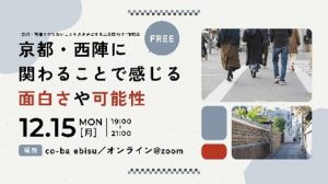「京都や西陣に関わることで感じる面白さや可能性」をテーマに、西陣で活動するプレイヤーによるトークセッションや参加者交流会などのイベントを東京で開催。